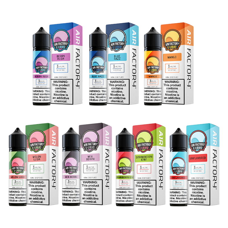 Elevate your vaping experience with Air Factory E-Liquid, available in a generous 60mL bottle. Known for its bold and consistent flavor profiles, Air Factory delivers premium vape juice that satisfies with every puff. Perfect for use with a variety of devices, this e-liquid provides a smooth and enjoyable vape, making it a top choice for vapers who demand quality and taste. Whether you’re a seasoned vaper or new to the scene, Air Factory E-Liquid offers the ideal combination of rich flavor and reliable performance. Enjoy the perfect blend of taste and vapor with Air Factory E-Liquid and make every vape session a delight.