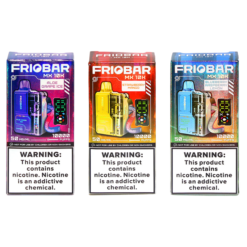 Introducing the Friobar MX 10K Disposable Vape, your ultimate companion for long-lasting, satisfying vaping. This powerful device offers an impressive 10mL prefilled capacity, ensuring you enjoy up to 10,000 puffs of rich and consistent flavor. With a 5% nicotine concentration, the Friobar MX 10K delivers strong, smooth hits that cater to both new and experienced vapers alike. Designed for convenience, this disposable vape requires no refilling or recharging, making it perfect for on-the-go use. Elevate your vaping experience with the Friobar MX 10K and enjoy a premium, hassle-free vape with every puff.