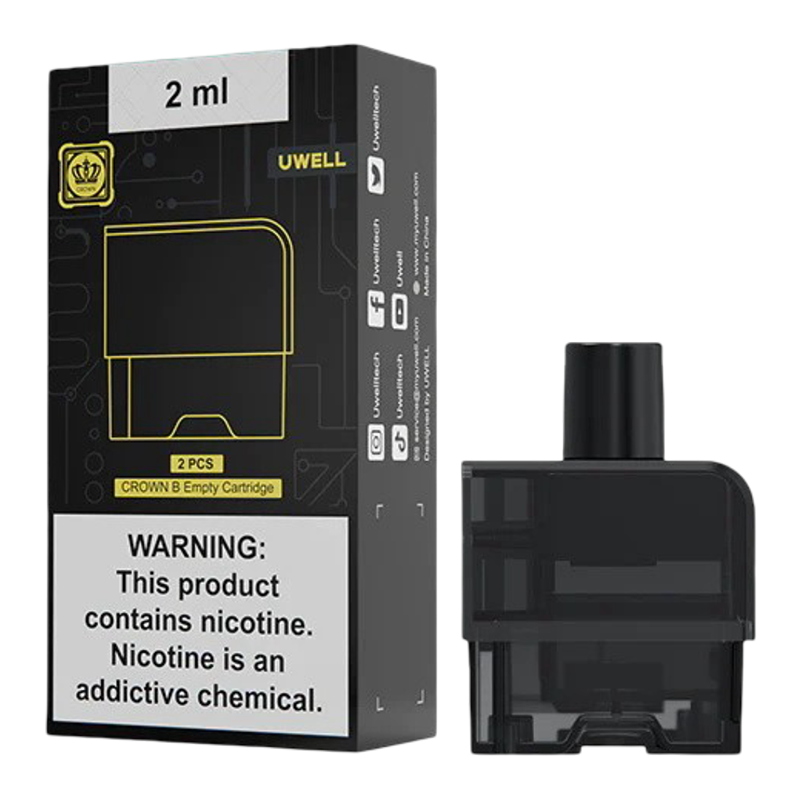 Discover the Uwell Crown B Pods (2-Pack), featuring a 3.5mL capacity, stepless sliding airflow switch, and accepts PA coils to deliver satisfying vapor.